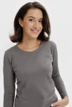 Dacă sunteți în căutarea unui tricou de damă universal, din bumbac, cu mânecă lungă, potrivit pentru fiecare zi, tocmai l-ați găsit. Tricoul de damă cu mâneci lungi este potrivit pentru purtarea pe tot parcursul anului la serviciu, la școală, acasă sau pentru plimbări. Pur și simplu întotdeauna și peste tot.